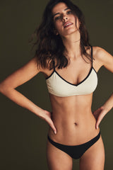 The Ribbed Barkley Set features a bikini top ribbed texture fabric, and a medium cut bikini bottom in black. Another incredible bikini from the design team at Flagpole NYC