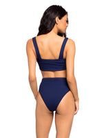 The Lee Lee top features soft ribbed fabric and a sculptural silhouette. Offering comfy, moderate support. Lightly lined in L* Space signature buttery fabric with wired V-neck detail at bust.