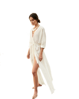 Lightweight cotton beach coat with tie belt. Once size fits all.
