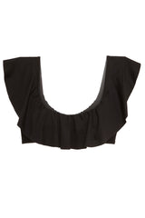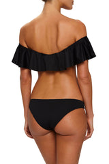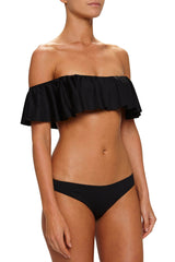 The Margarita bikini top has a wide ruffle across the front and can be worn on or off the shoulder. Match with any of the Eberjey black bottoms, or wear as a top with jeans, skirts or shorts for a femine and playful look.